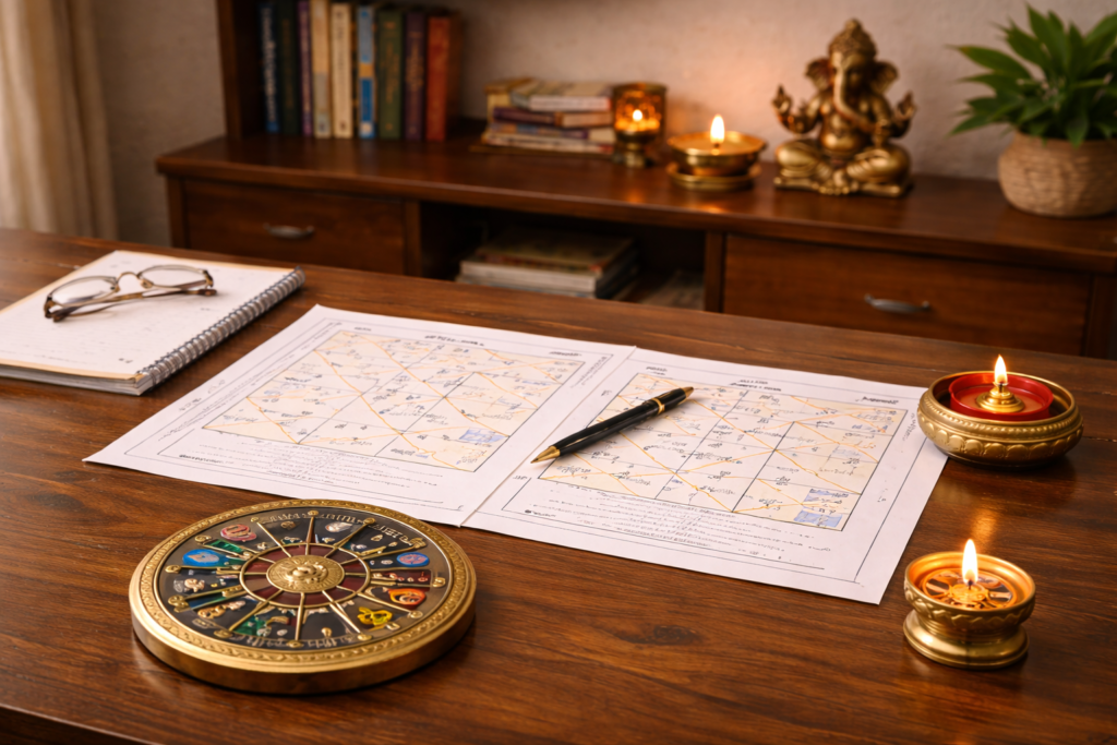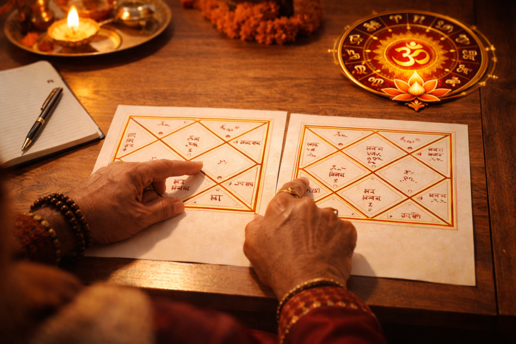 Through the experience of Pandit Sri Santosh Sharma Ji (35+ years), we offer Vedic astrology guidance for marriage, career, business, and family matters. Each consultation is focused on understanding your situation clearly and providing the right direction along with meaningful remedies.